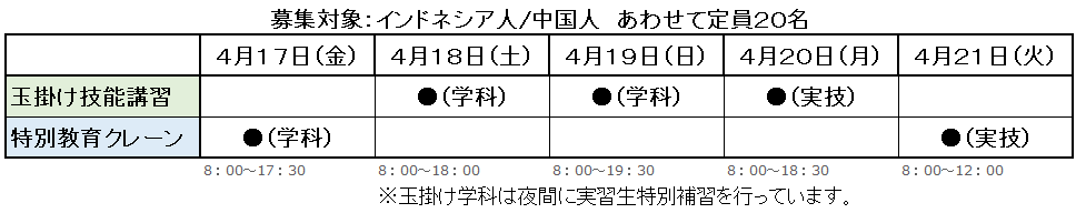 インドネシア人/ ベトナム人/ミャンマー人追加 対象 あわせて20名定員予定